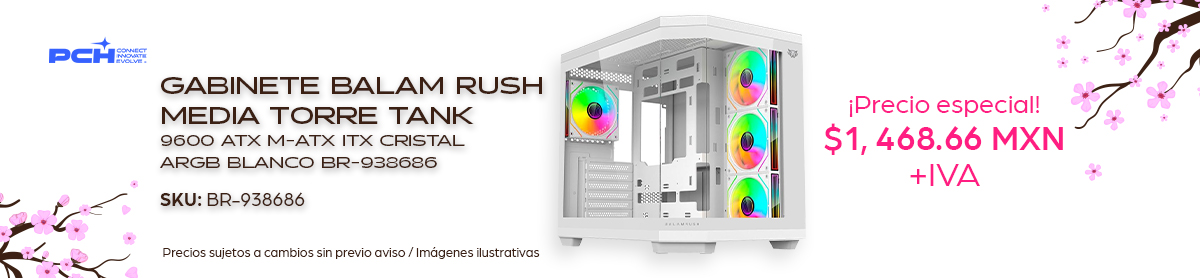 GABINETE BALAM RUSH GAMER MEDIA TORRE TANK 9600 ATX M-ATX ITX CRISTAL ARGB BLANCO BR-938686