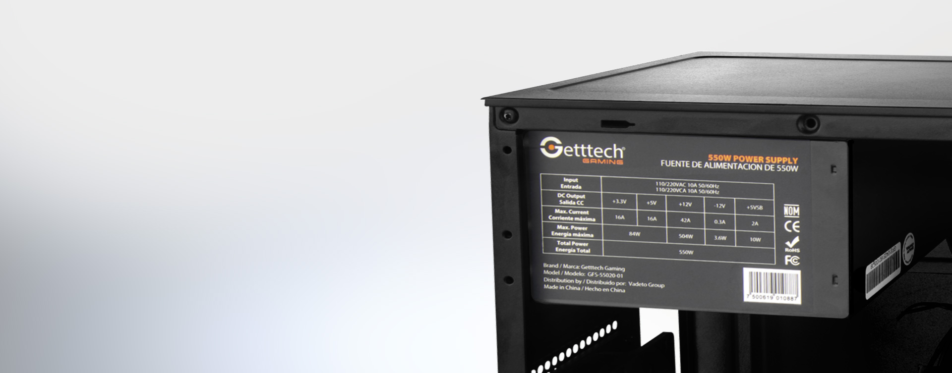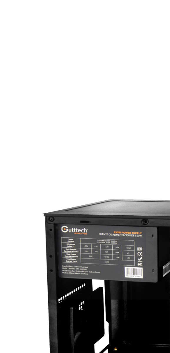 GABINETE GETTTECH MINI TORRE M-ATX FUENTE DE 550W GCS-INOS1-01