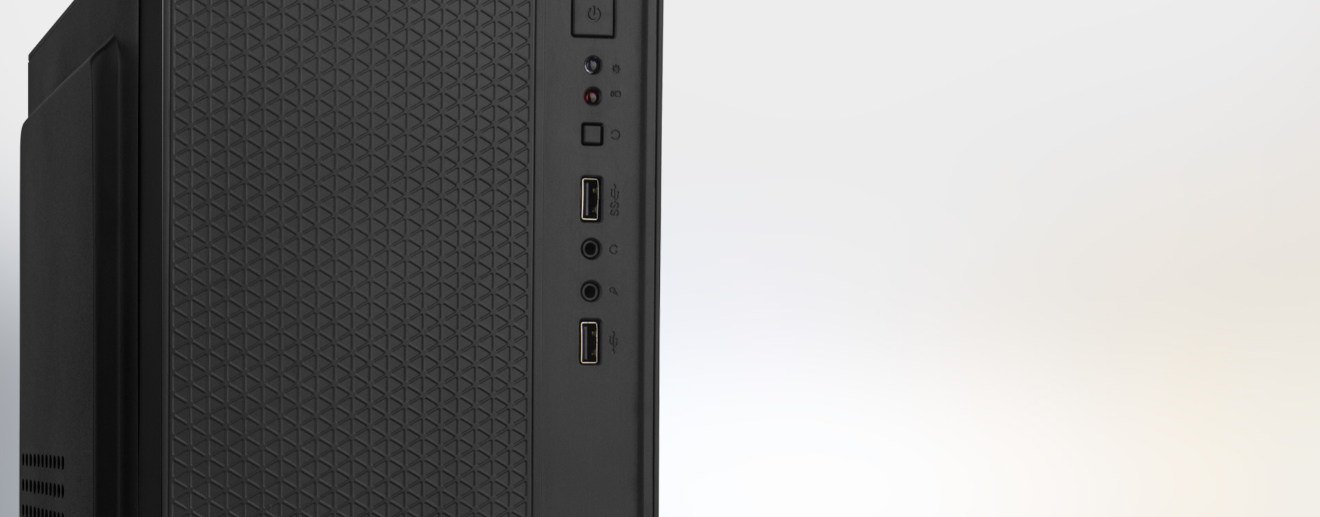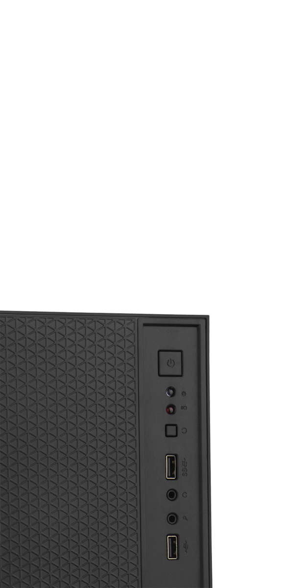 - Fácil acceso a dos puertos USB 2.0 y jack de audio en la parte frontal, para conectar periféricos o audífonos sin necesidad de alargar cables hasta la parte trasera.