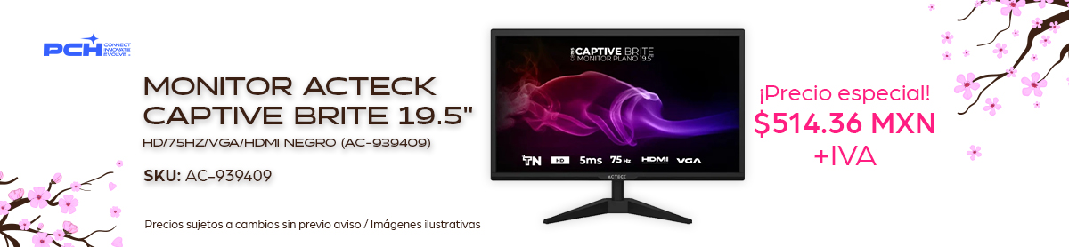 MONITOR ACTECK CAPTIVE BRITE 19.5" /HD/60HZ - 75HZ/VGA/HDMI NEGRO (AC-939409)